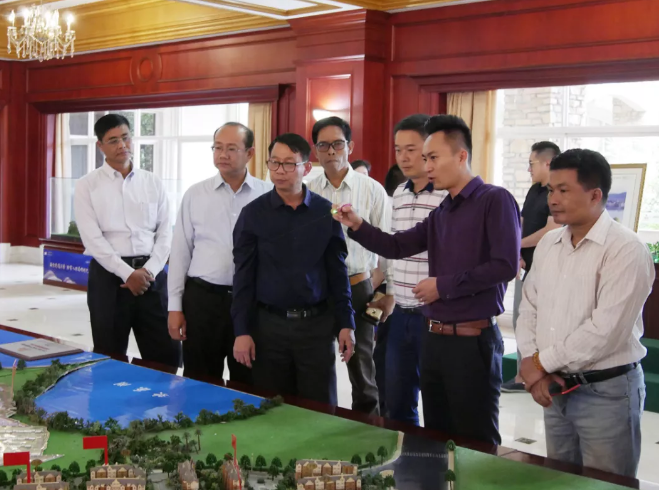 在恒益集團(tuán)副總裁彭安強(qiáng)及相關(guān)領(lǐng)導(dǎo)陪同下,吳偉林部長一行參觀了恒益集團(tuán)東山康養(yǎng)小鎮(zhèn)總規(guī)沙盤、高黎貢文化創(chuàng)意產(chǎn)業(yè)園區(qū),聽取了項目介紹及匯報。吳偉林部長重點就康養(yǎng)小鎮(zhèn)項目規(guī)劃、投資、建設(shè)、運營、銷售等方面做了詳細(xì)了解,雙方就緬甸密支那經(jīng)濟(jì)開發(fā)區(qū)項目總規(guī)、可研等問題做了深入交流。