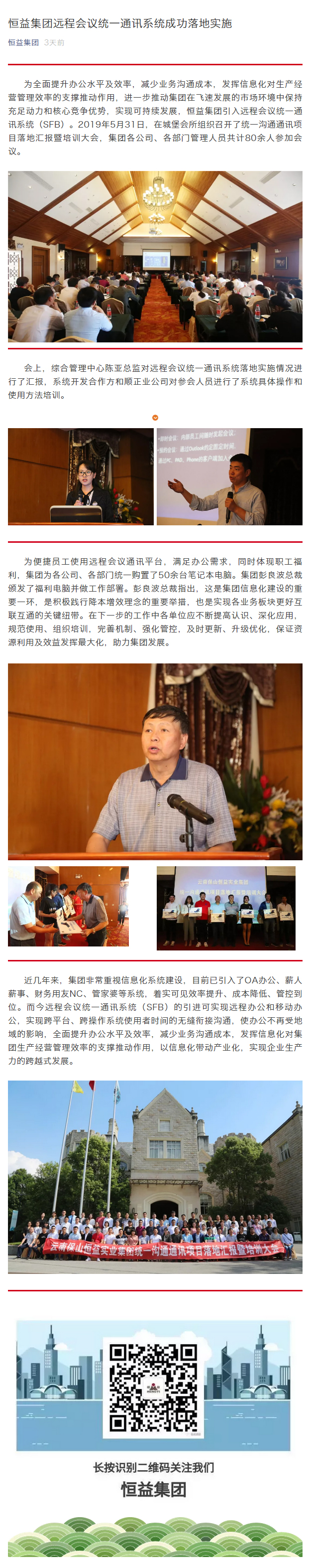 恒益集團(tuán)遠(yuǎn)程會(huì)議統(tǒng)一通訊系統(tǒng)成功落地實(shí)施 來(lái)源: 瀏覽量:7722 日期:2019-06-03 分享到: 上一篇:大理州、市領(lǐng)導(dǎo)一行參觀考察高黎貢文化創(chuàng)意產(chǎn)業(yè)園區(qū) 下一篇:恒益集團(tuán)組織召開(kāi)戰(zhàn)略部署及強(qiáng)化內(nèi)部管理會(huì)議