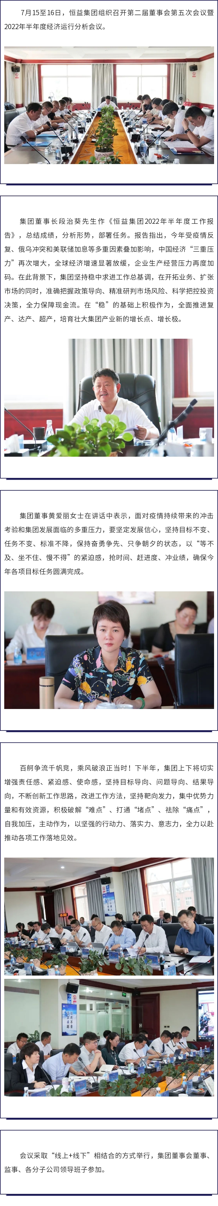 恒益集團(tuán)第二屆董事會(huì)第五次會(huì)議暨2022年半年度經(jīng)濟(jì)運(yùn)行分析會(huì)議圓滿舉行 來(lái)源: 瀏覽量:6817 日期:2022-07-18 分享到: 上一篇:知見(jiàn)行公益基金會(huì)聯(lián)合恒益集團(tuán)向騰沖市八所學(xué)校捐贈(zèng)230萬(wàn)元獎(jiǎng)教金 下一篇:增技興農(nóng)助發(fā)展——中國(guó)工程院院士朱蓓薇一行蒞臨恒益農(nóng)業(yè)調(diào)研指導(dǎo)