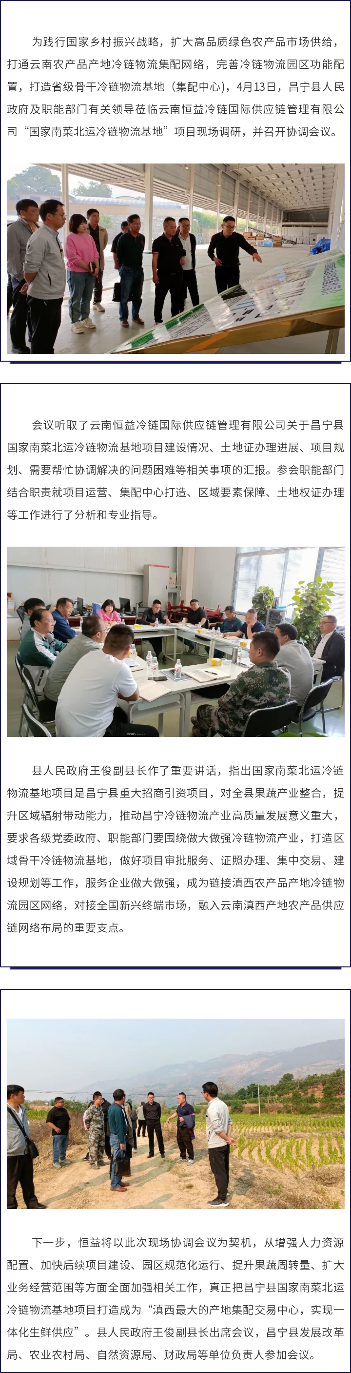 昌寧縣人民政府及有關職能部門領導蒞臨國家南菜北運冷鏈物流基地項目召開現(xiàn)場調研協(xié)調會議 來源: 瀏覽量:5244 日期:2023-04-17 分享到: 上一篇:騰沖市珠寶玉石對外交流協(xié)會首屆年會暨翡翠產業(yè)發(fā)展交流會盛大召開 下一篇:以練促防丨恒益礦業(yè)公司開展聯(lián)動應急演練