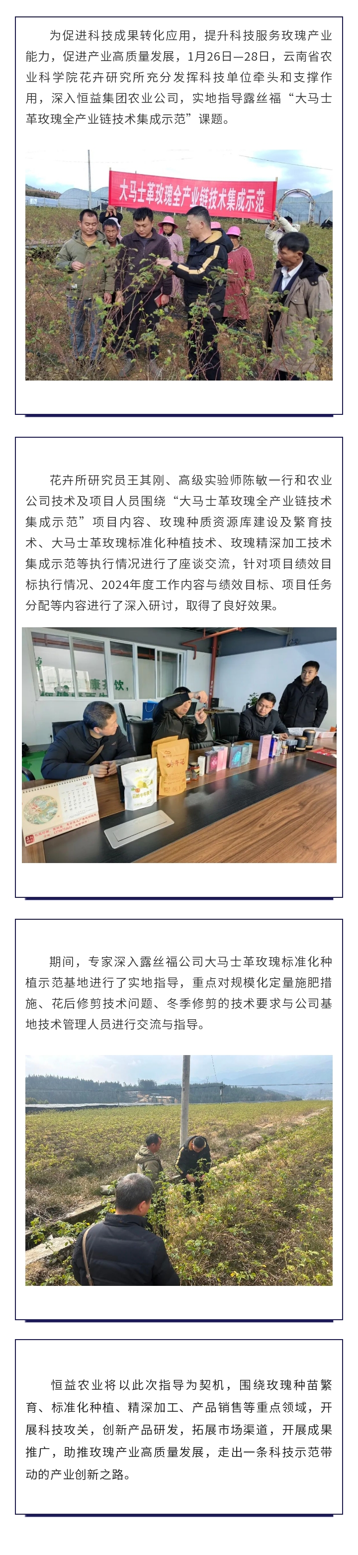 花卉所科技人員指導(dǎo)露絲福公司開(kāi)展鄉(xiāng)村振興科技創(chuàng)新縣——大馬士革玫瑰全產(chǎn)業(yè)鏈技術(shù)集成課題 來(lái)源: 瀏覽量:4285 日期:2024-01-30 分享到: 上一篇:強(qiáng)強(qiáng)聯(lián)合集聚發(fā)展效能 合作共贏助力產(chǎn)業(yè)騰飛 下一篇:新春送祝福,關(guān)懷暖人心丨中共騰沖市委書(shū)記馬子興率隊(duì)到恒益集團(tuán)開(kāi)展春節(jié)慰問(wèn)