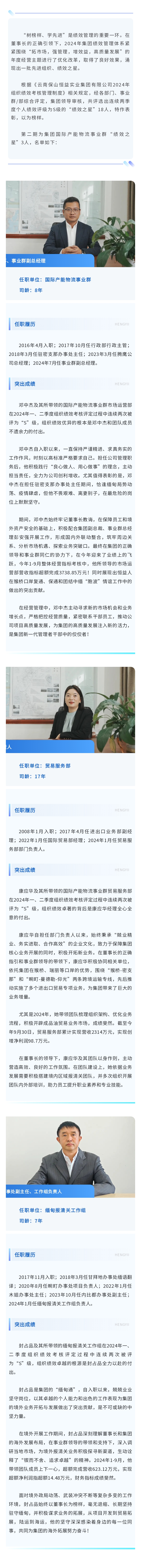 恒以致遠(yuǎn) 踔厲奮發(fā)丨恒益“績效之星”(第二期):國際產(chǎn)能物流事業(yè)群 來源: 瀏覽量:3576 日期:2024-11-06 分享到: 上一篇:恒以致遠(yuǎn) 踔厲奮發(fā)丨恒益“績效之星”(第三期):文旅康養(yǎng)事業(yè)群 下一篇:跟著賽事去旅行丨2024七彩云南格蘭芬多自行車賽,騰沖東山等你來戰(zhàn)!