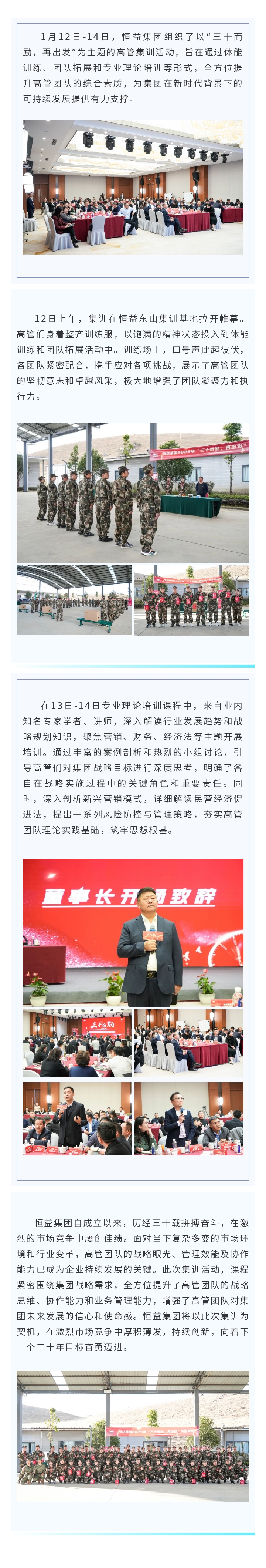 “三十而勵(lì),再出發(fā)”——恒益集團(tuán)高管集訓(xùn)順利舉行 來(lái)源: 瀏覽量:3481 日期:2025-01-14 分享到: 上一篇:拓市場(chǎng),強(qiáng)管理,增效益,高質(zhì)量發(fā)展——恒益集團(tuán)組織召開(kāi)第三屆董事會(huì)第二次會(huì)議暨2024年度工作會(huì)議 下一篇:升級(jí)了升級(jí)了,騰沖東山草原景區(qū)獲評(píng)國(guó)家AAAA級(jí)旅游景區(qū)