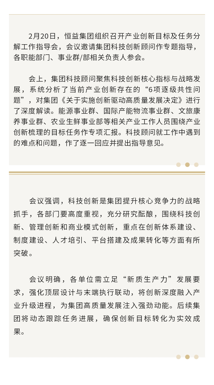 恒益集團(tuán)召開2025年產(chǎn)業(yè)創(chuàng)新目標(biāo)及任務(wù)分解工作指導(dǎo)會(huì) 來源: 瀏覽量:3403 日期:2025-02-21 分享到: 上一篇:云南省商務(wù)廳副廳長譚偉一行蒞臨恒益集團(tuán)調(diào)研指導(dǎo) 下一篇:恒益集團(tuán)董事長段治葵率隊(duì)到昆明鼎邦科技公司考察交流