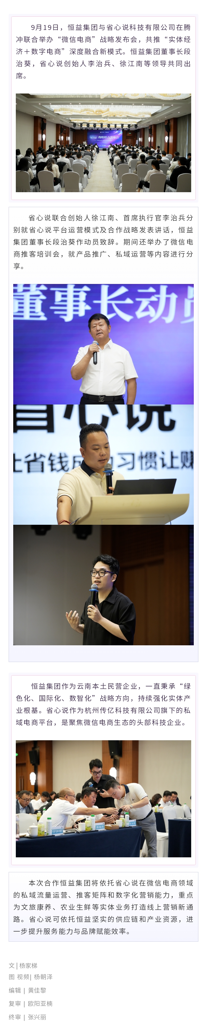 恒益集團(tuán)與省心說(shuō)科技達(dá)成合作 共筑微信電商新生態(tài) 來(lái)源: 瀏覽量:1355 日期:2025-09-19 分享到: 上一篇:榮登雙榜!恒益集團(tuán)榮獲2025云南民企百?gòu)?qiáng)第30位、服務(wù)業(yè)20強(qiáng)第8位 下一篇:喜訊丨恒益集團(tuán)榮膺2025年“騰沖市教育事業(yè)高質(zhì)量發(fā)展先進(jìn)集體”稱(chēng)號(hào)
