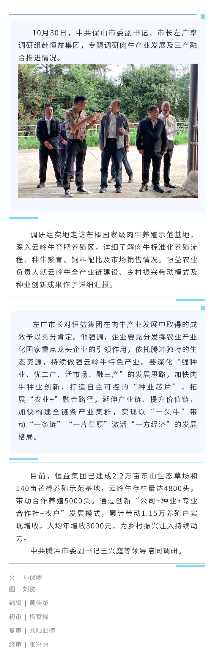保山市市長率隊調(diào)研恒益集團(tuán)云嶺牛產(chǎn)業(yè)發(fā)展情況 來源: 瀏覽量:601 日期:2025-10-31 分享到: 上一篇:恒益溫泉醫(yī)康養(yǎng)(儀征)項目正式啟動 致力打造長三角溫泉醫(yī)康養(yǎng)產(chǎn)業(yè)新標(biāo)桿 下一篇:共筑康養(yǎng)新未來 | 恒益集團(tuán)與古兜控股強(qiáng)強(qiáng)聯(lián)手,簽署戰(zhàn)略合作協(xié)議