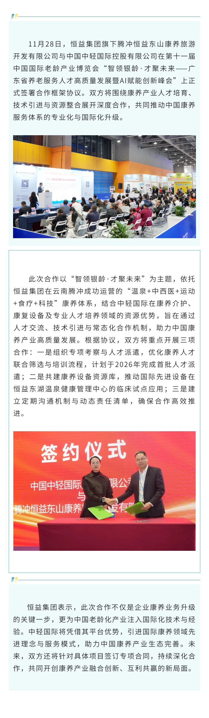 恒益集團攜手中輕國際 共筑康養(yǎng)產業(yè)合作新篇章 來源: 瀏覽量:293 日期:2025-11-29 分享到: 上一篇:“云南恒益·疆煤寶”杯摜牌(摜蛋)年度總決賽圓滿落幕,以健康體育為媒推動區(qū)域協同與產業(yè)融合 下一篇:北京知見行公益基金會再獲中基透明指數FTI2025滿分